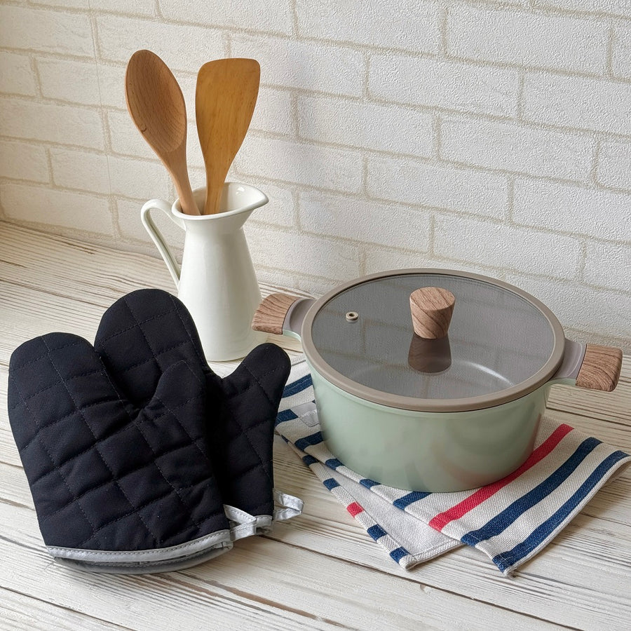 チェック状にステッチがあり、滑りにくい仕様なので、熱いお鍋やお皿も安心して持ち運ぶことができます